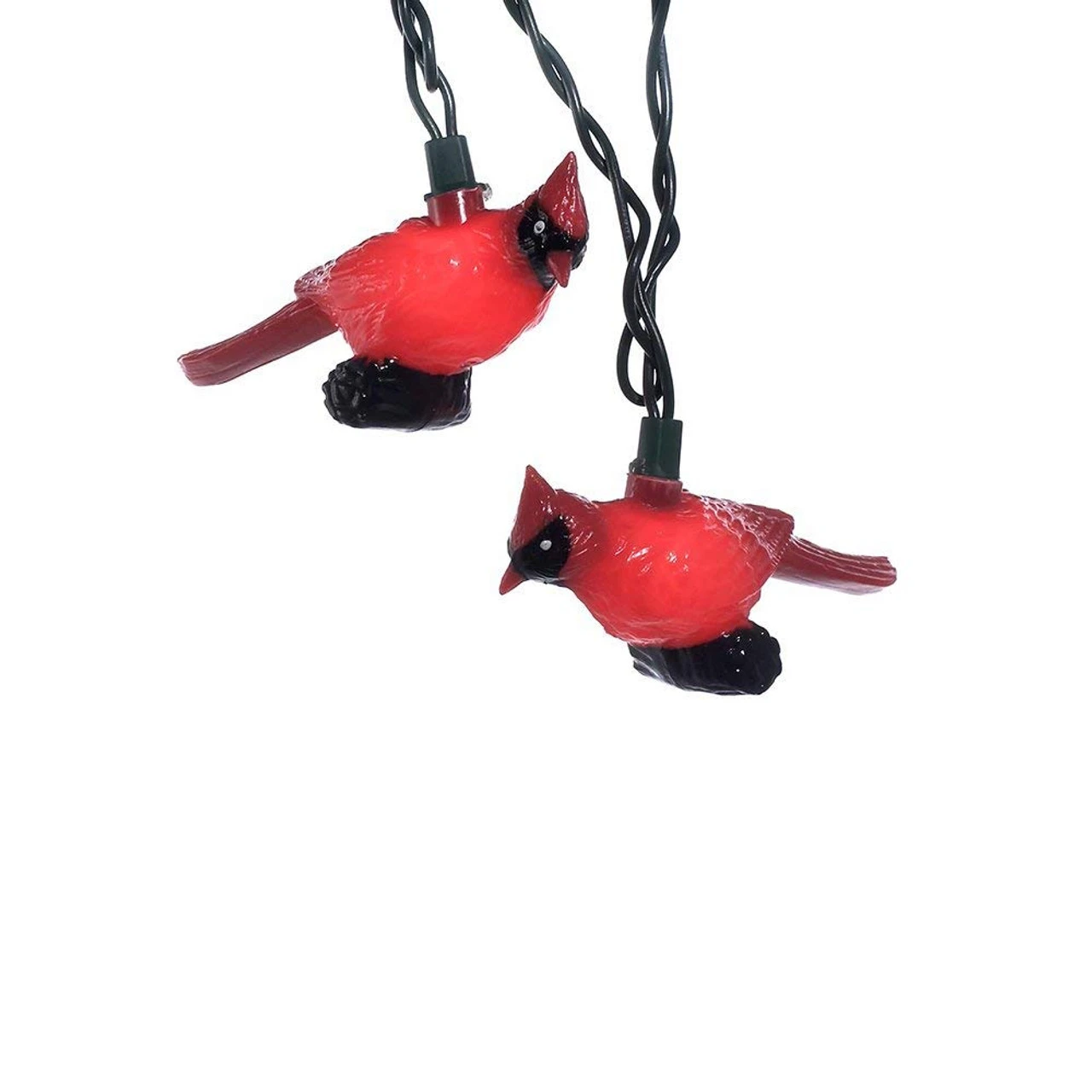 This novelty light set features 10 red cardinal lights with 30-inch lead wire, 12-inch spacing, cut green wire,