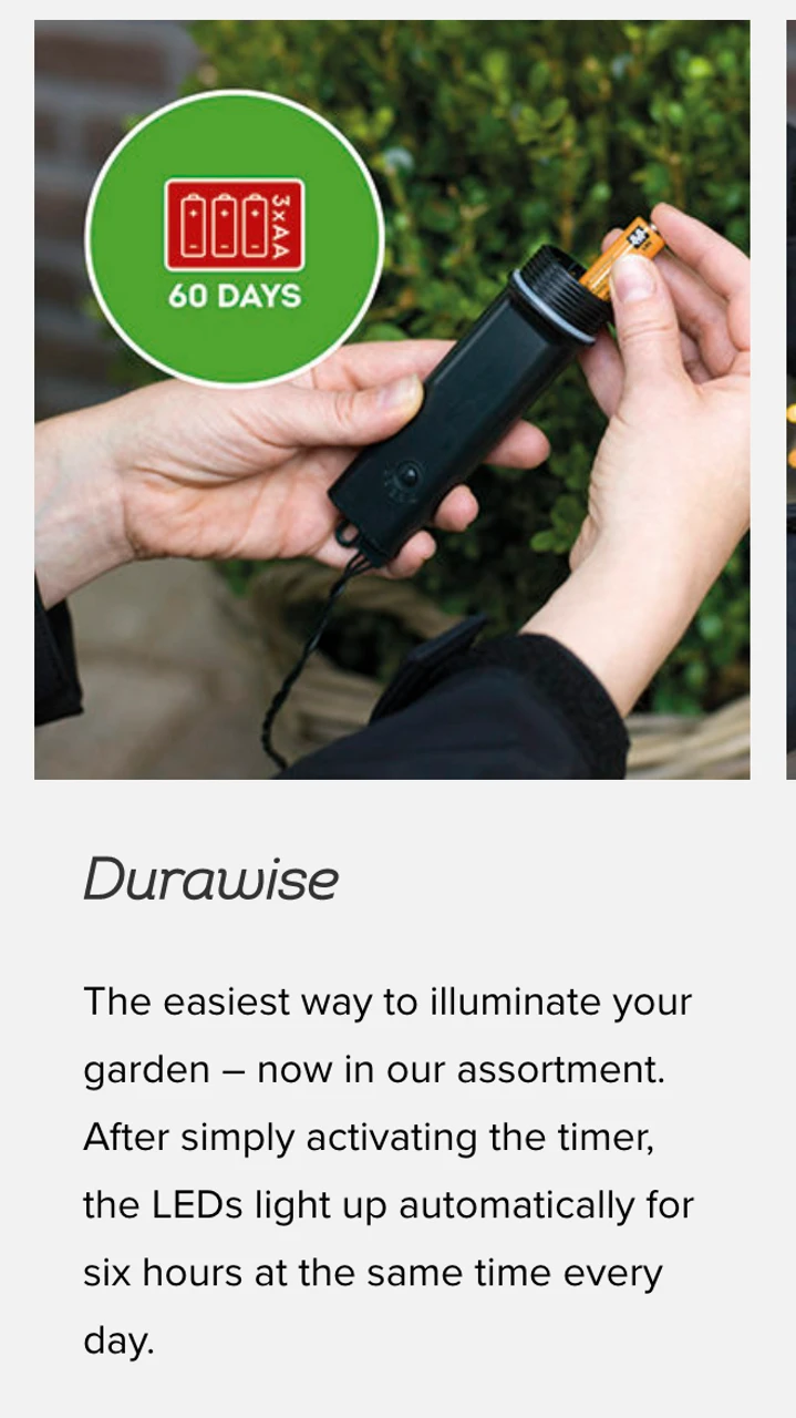 - Lasts up to 60 days with a fresh set of batteries when using the timer function