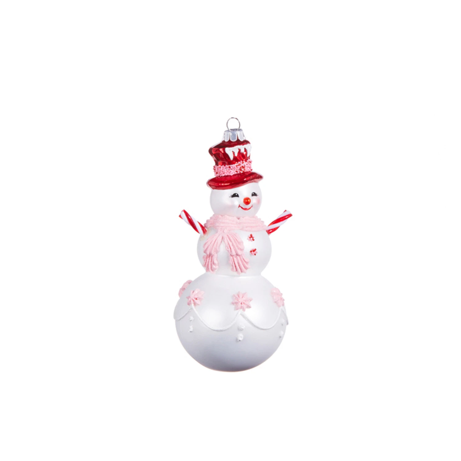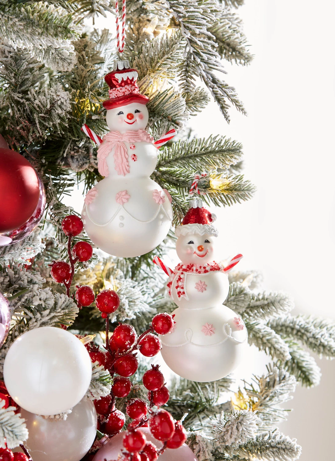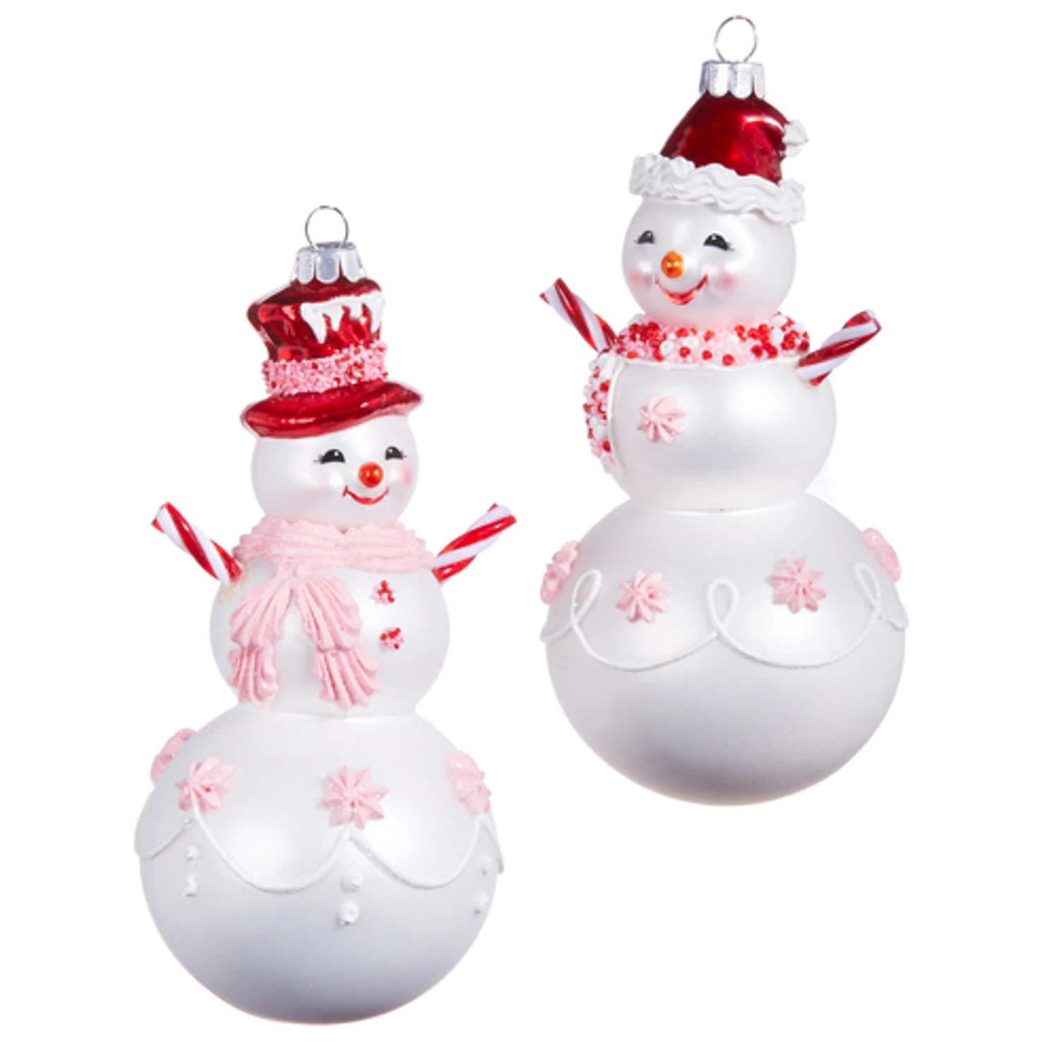 These sweet little snowmen have blushing cheeks and a tiny carrot nose decorated with pink and white icing and re and pink sprinkles! Each one wears a bright red hat and have peppermint candy arms! Each sold individually OR as a set of 2. Made by Raz Imports. Made of glass. Dimensions: 3.5″L X 3″W X 6.25″H. Item #: 4352876