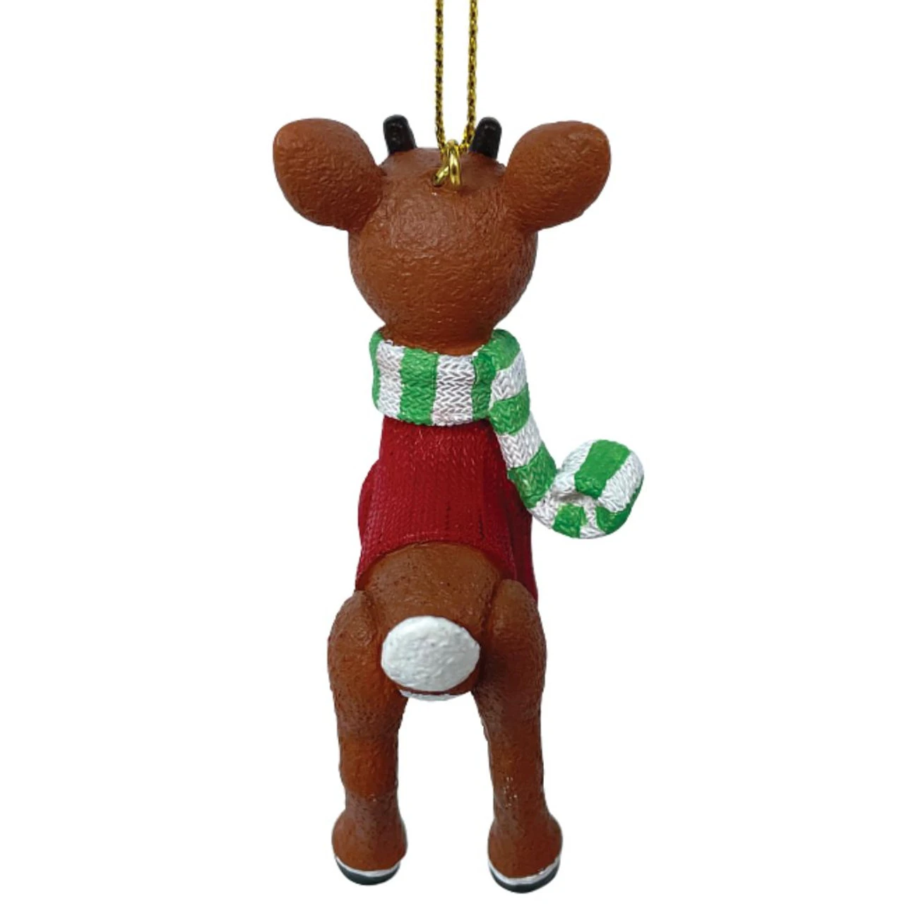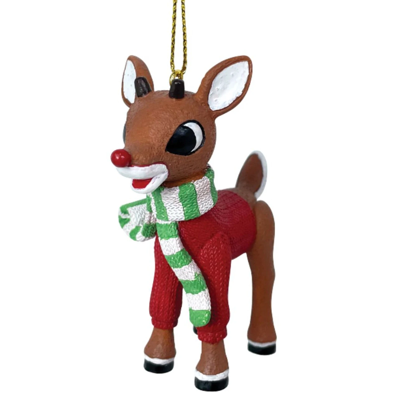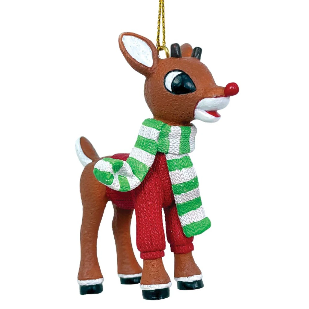 It can get a bit chilly up in the North Pole so Rudolph breaks out his favorite red sweater and stripped scarf.
