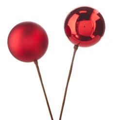 Raz 12″ Set Of 2 Red, Gold, Silver Or Green Ball Ornament Christmas Tree Pick