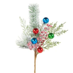 Raz 16″ Snowy Pine And Multicolor Ball Ornament Christmas Tree Pick F4306722