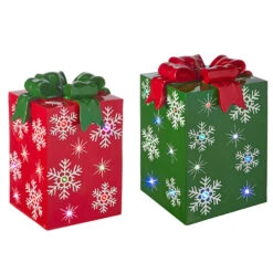 Raz 14.25″ Or 21″ Lighted LED Red Or Green Present Christmas Decorations